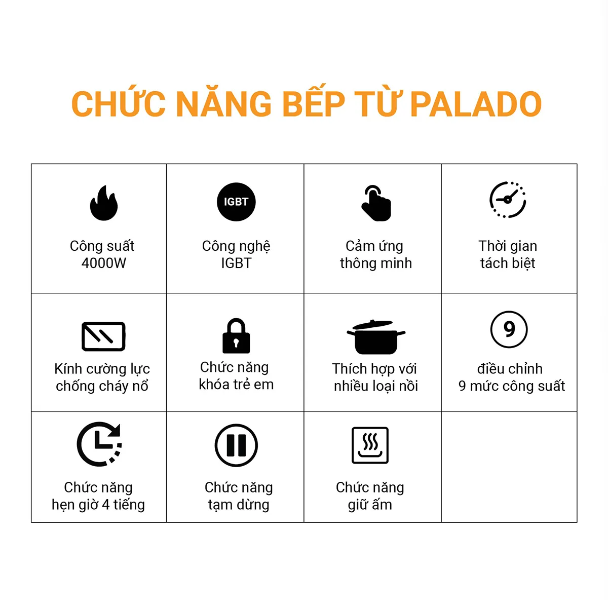 Bếp từ Palado không chỉ giúp quá trình nấu nướng trở nên dễ dàng và tiện lợi. Với thiết kế hiện đại, chất liệu sang trọng, sản phẩm của chúng tôi không chỉ là công cụ nấu ăn mà còn là điểm nhấn đẹp mắt trong ngôi nhà của bạn.