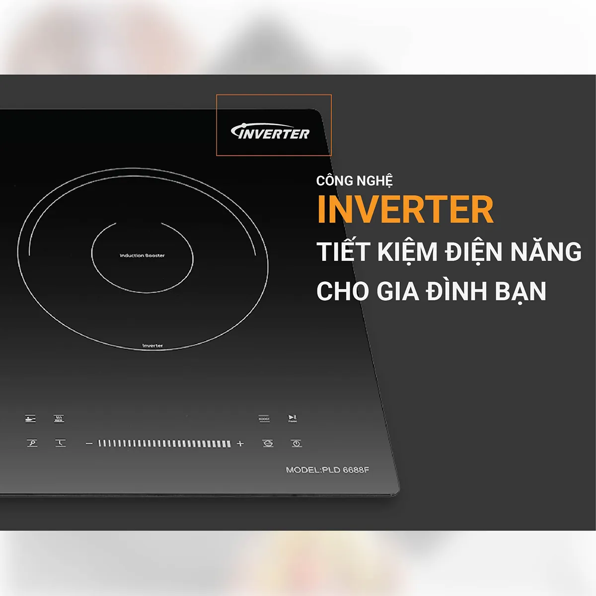 - Công nghệ Inverter tiết kiệm điện năng: Bếp từ thông minh này sử dụng công nghệ Inverter để điều chỉnh công suất theo nhu cầu thực tế, giảm thiểu lãng phí điện năng và tăng hiệu quả nấu nướng.